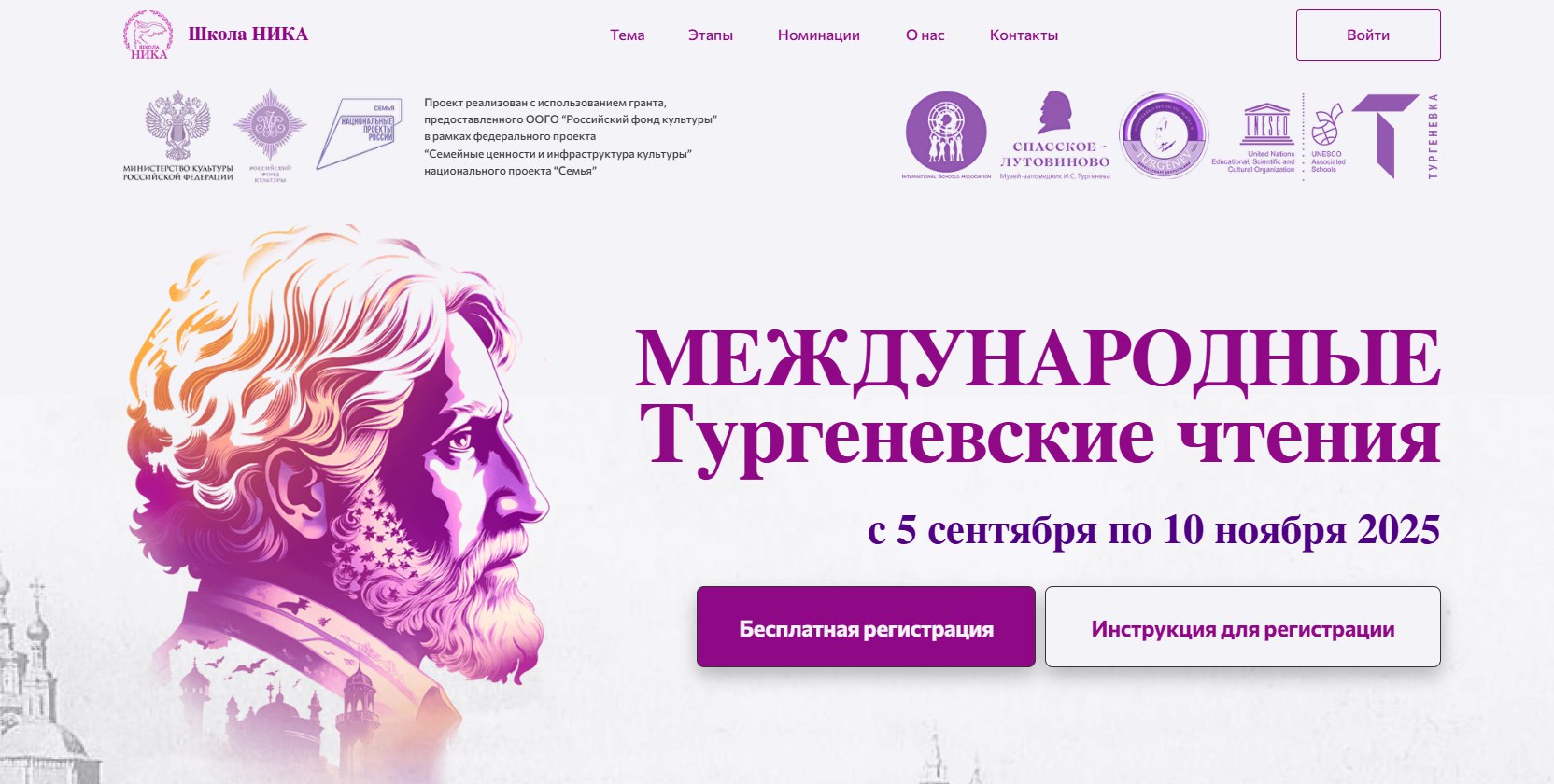 С Положением и подробностями проведения мероприятия можно ознакомиться на сайте Тургеневских чтений: https://turgenev-readings.nika-school.ru
