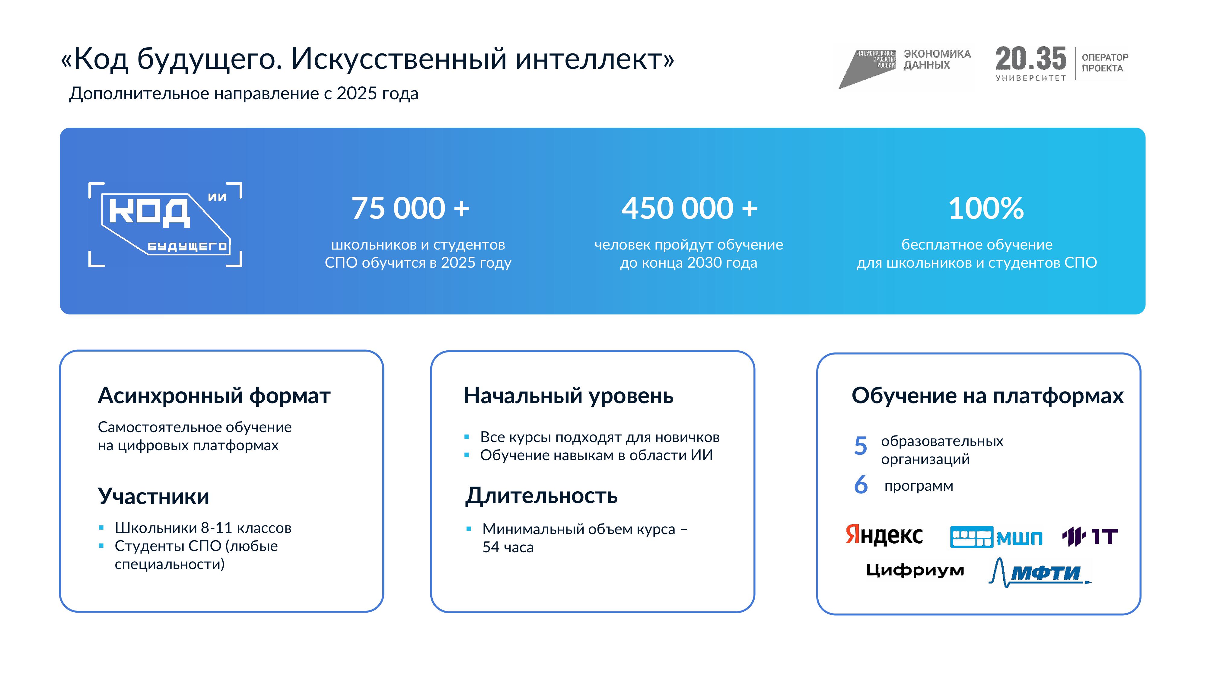 Уважаемые родители и дети! В настоящее время на портале федеральнойгосударственной информационной системы «Единый портал государственных и муниципальных услуг (функций)» осуществляется прием заявлений на участие в проекте "Код будущего. Искусственный интеллект".