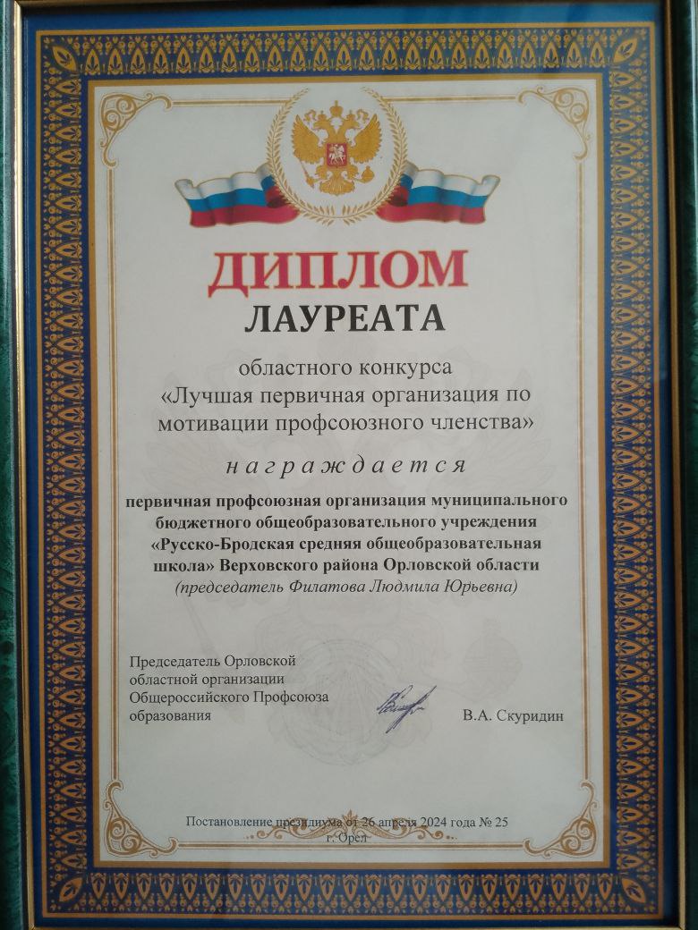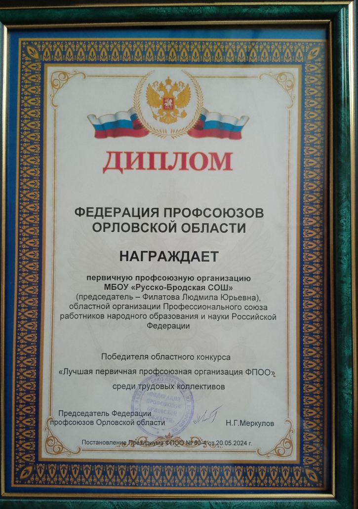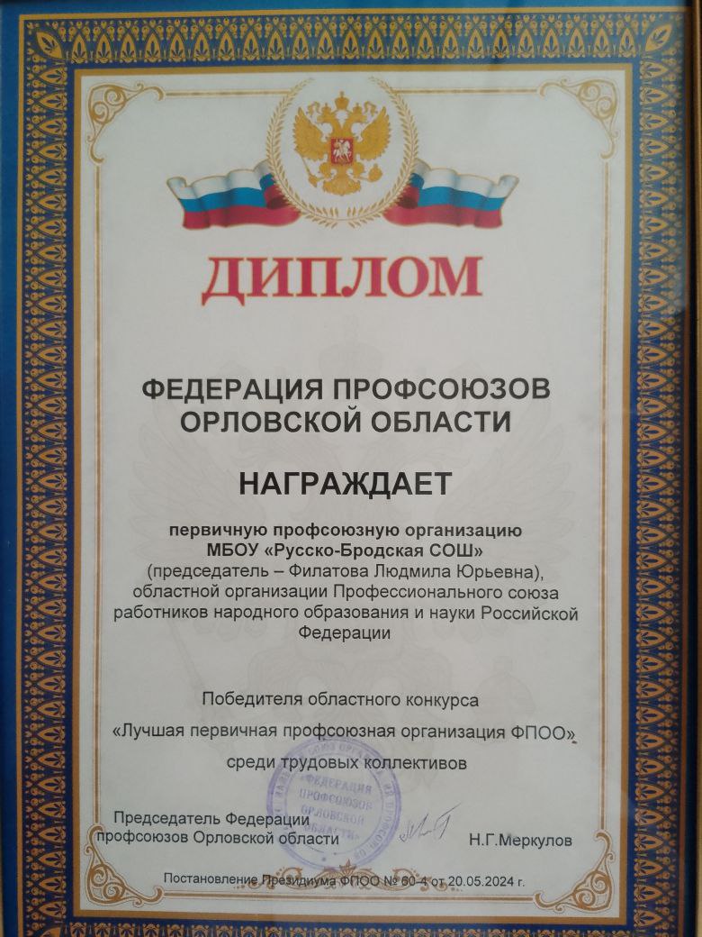 Профсоюзная работа МБОУ Русско- Бродская СОШ